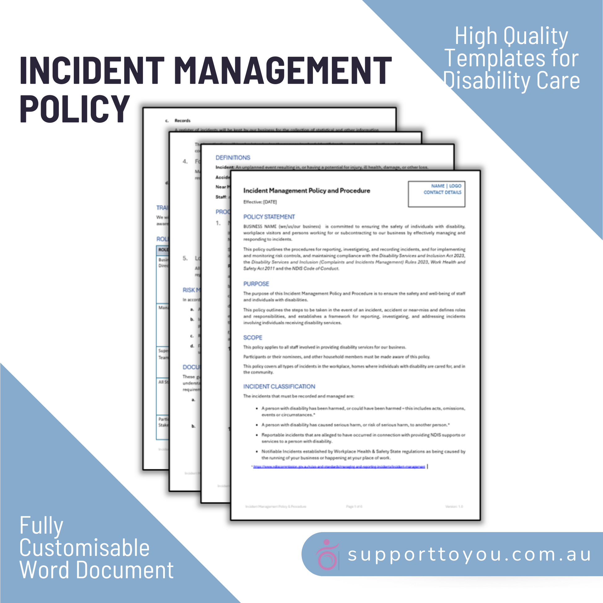 Our great value policy and procedure bundle for service providers and sole traders in disability care provides 13 essential business policies and 23 supplemental forms. These are the basic policies you will need to run your business.