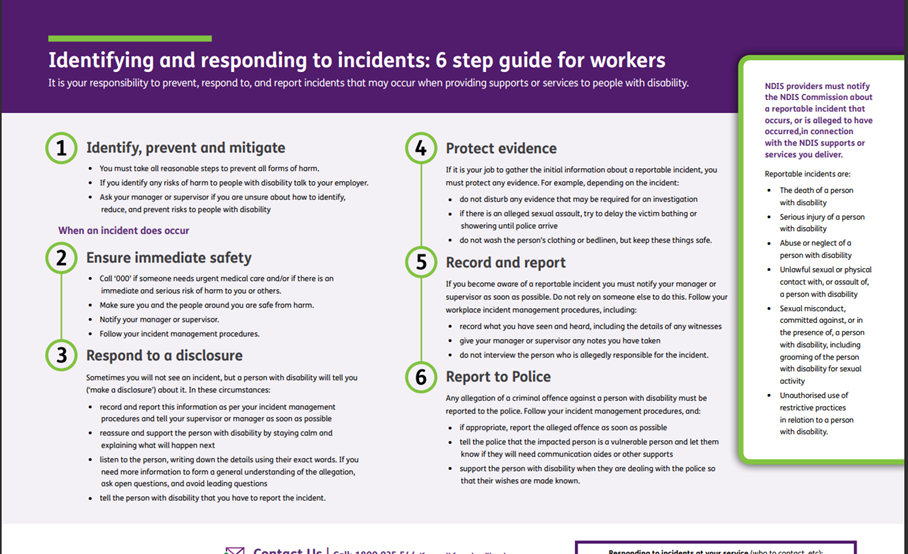 - NDIS Reportable Incidents poster (attached to the Incident Report)