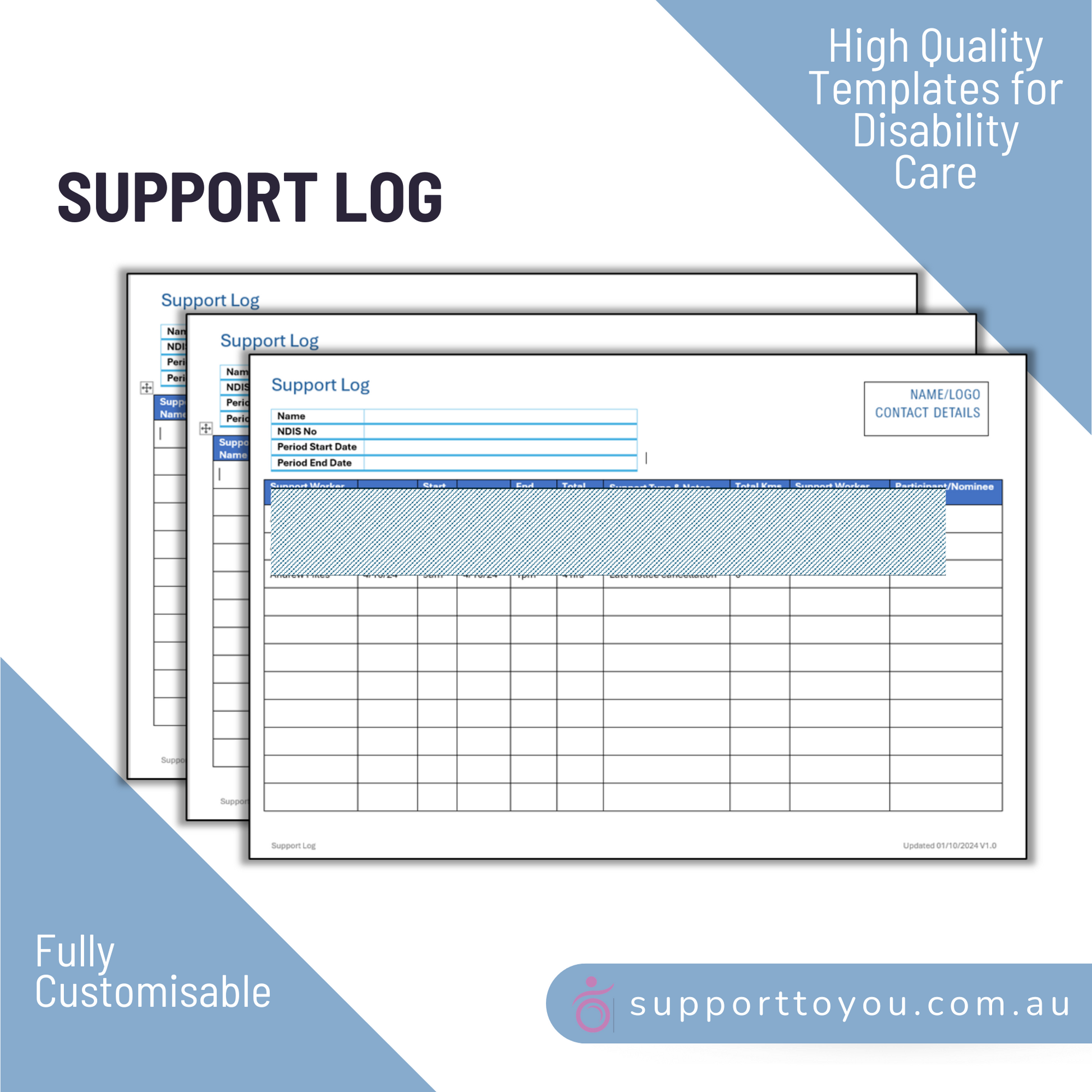 Our easy-to-use Support Log Template is designed for sole traders and service providers to accurately document the supports delivered to participants. Suitable for both individual and team services, it ensures compliance with NDIS guidelines, which emphasises the importance of maintaining support logs with participant sign off.